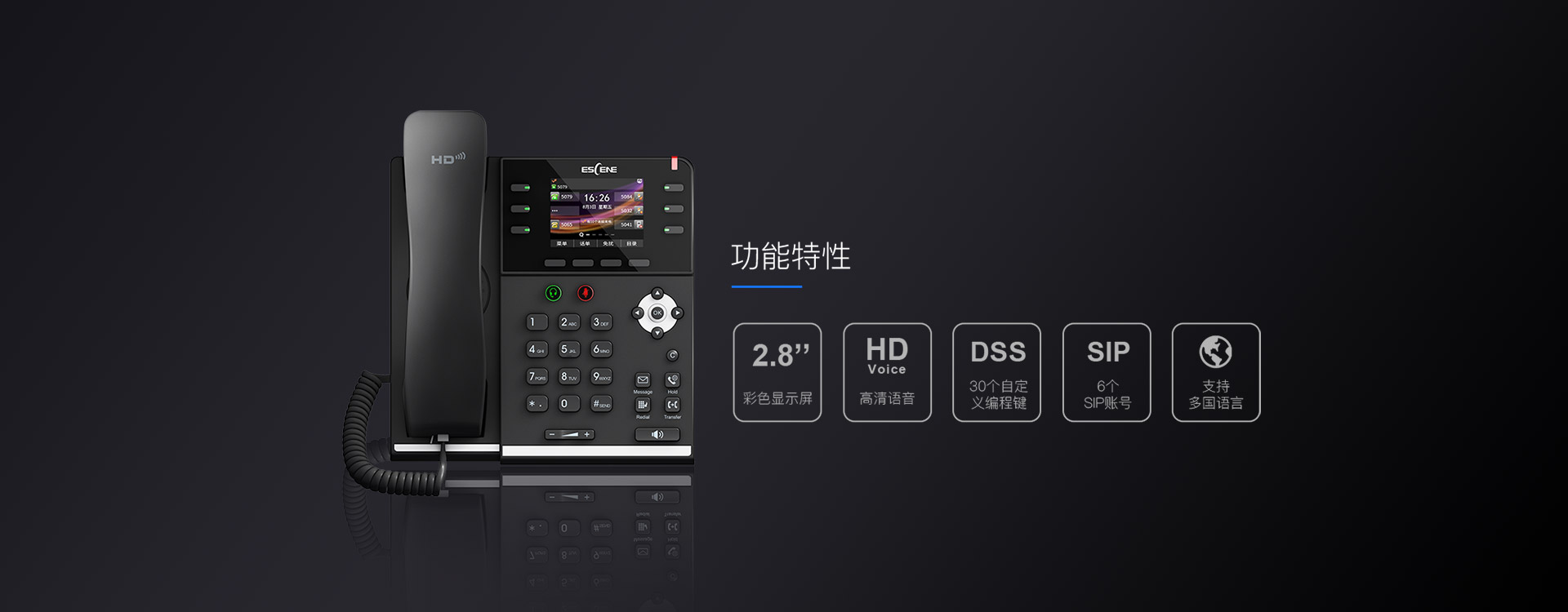 首頁(yè) > 產(chǎn)品展示 > 億景高性價(jià)比辦公I(xiàn)P話機(jī) > ES380-PG